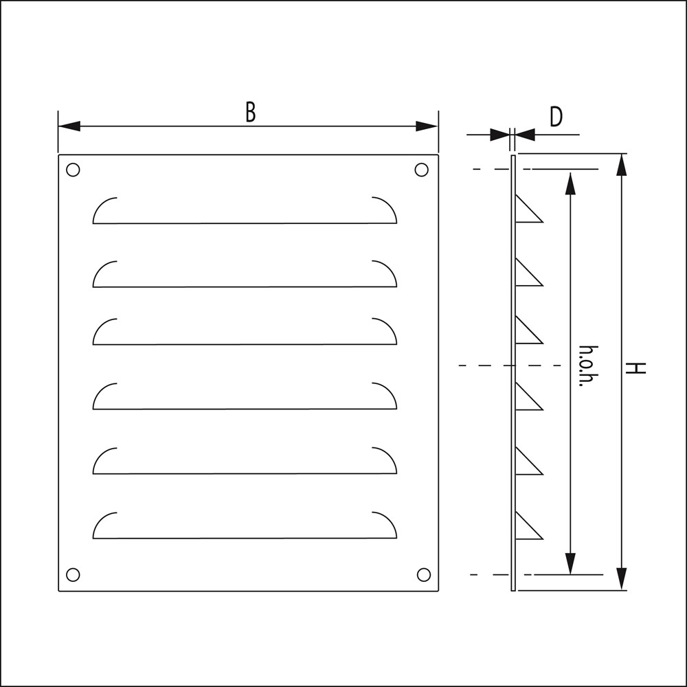 Schoepenrooster (grote schoep) vlakke plaat, opbouw. Blank aluminium, bevestigingsgaten: Ø4mm
